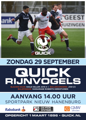 Quick 1 is het komend seizoen ingedeeld in een aantrekkelijke maar waarschijnlijk ook een behoorlijk sterke poule. Er zijn wat leuke derby's bij gekomen waarbij vooral degene tegen 's Gravenzande in het oog springt. Verder onder andere Rijnvogels, VVSB en Lisse.