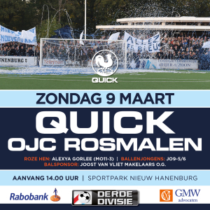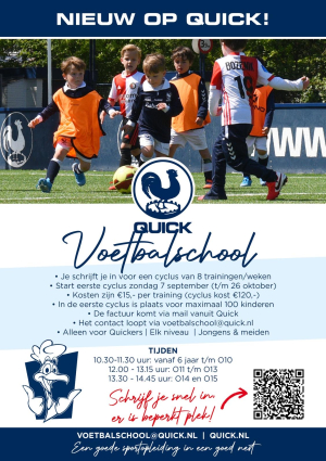 Quick O23 is gepromoveerd naar de hoogste divisie en komt daar onder andere HBS en Katwijk tegen.